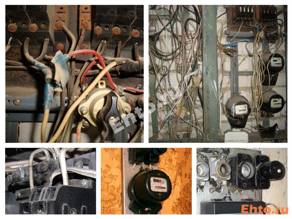 2. Если в квартирном щитке стоят автоматы защиты старого образца (черный цвет) или установлены плавкие предохранители или автоматические пробки, если этажный щит напоминает заросшие лианы покрытые паутиной, то нужно серьезно задуматься о серьезном ремонте и переоборудовании (переборке) вашей секции в этажном щите или замены квартирного электрощита, если он стоит в квартире.